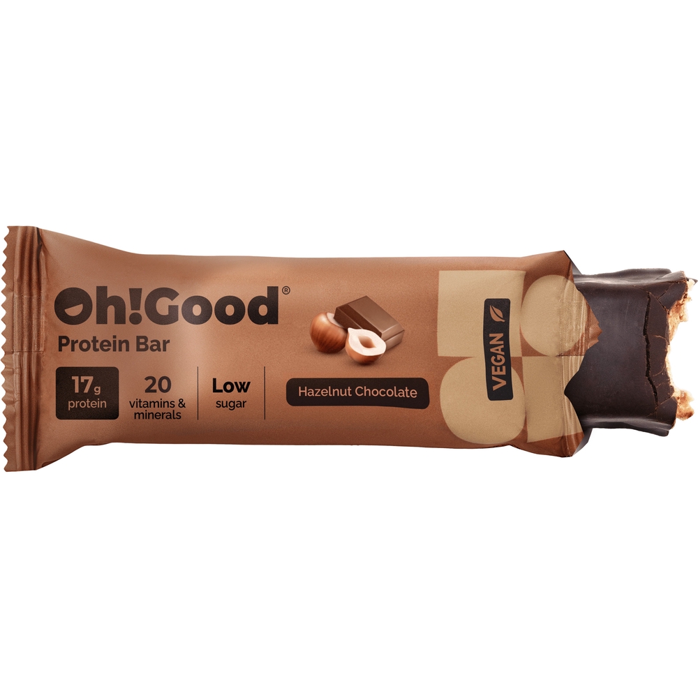Oh!Good Protein Bar Chocolate Hazelnut on tasakaalustatud koostisega taimne proteiinibatoon, mis sisaldab kvaliteetseid taimseid valke ja kiudaineid, aidates hoida täiskõhutunnet ning toetada igapäevast toitumist. Baton sobib suurepäraselt vahepalaks tööpäeva jooksul, enne või pärast treeningut ning olukordades, kus vajad kiiret ja toitvat ampsu.
